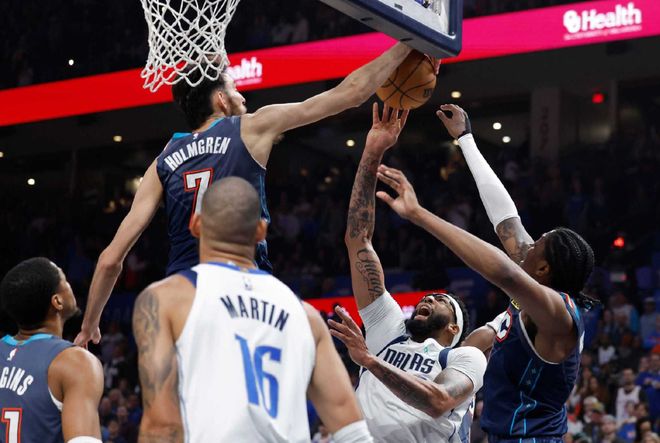 NBA历史上只有两人能够做到:连续三个赛季至少场均30+且保持50%命中率,一个是乔丹(是连续5个赛季),一个是亚历山大。这么打下去,亚历山大真有望比肩乔丹!而在亚历山大之外,霍姆格伦本赛季出战的20场比赛,雷霆全胜。他也超越文班亚马,成为本赛季最佳防守球员第一热门人选。场均18.6分8.1篮板1.5盖帽,当他在场时,雷霆防守效率低至104.5,百回合净效率值+17.7!此外,球队二当家杰威,因为无缘出战65场,错失单项评选,导致2.89亿顶薪合同缩水到2.41亿美元,释放了未来雷霆薪资压力。